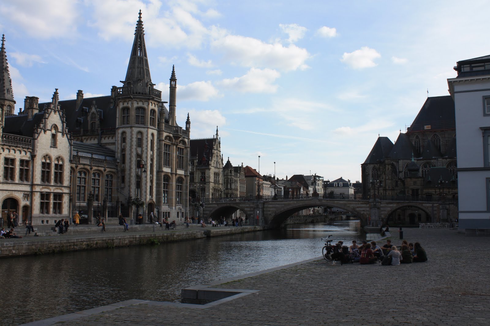 We arrived in Ghent, Belgium yesterday, a charming city with picturesque Medieval architecture. Apparently, it's a lot like Bruges, but far less touristy and/or kitschy. It's actually amazing that there aren't more people with cameras wandering around and that, before three days ago, I had never even heard of Ghent. The place is such a sight. It reminds me of a pan-European town in a Disney movie.