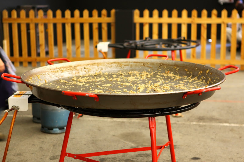 Beers were carried from the campsite bar over across the street, where the Irish supporters had hung up flags and a banner that read "YES WE CAN!" The game didn't start until 9:30, but the singing started around seven. When it rained for a little while, the singing got louder. Close to game time, the Andorran supporters (who we'd assumed were just having an 'early' dinner) had still not arrived in any great number. We were invited down to join Team Ireland, but would have felt a little bit like traitors. Plus, we had a paella to make. Gypsy Kitchens: Camping Paella